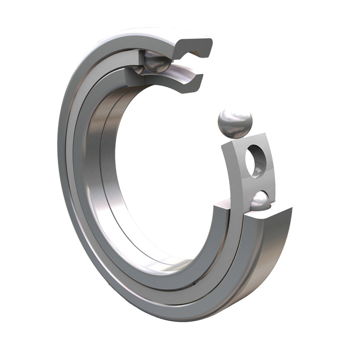 Łożyska kulkowe o styku czteropunktowym z pierścieniem dzielonym, znane także jako łożyska kulkowe skośne jednorzędowe, mają bieżnie ukształtowane tak, że mogą przenosić obciążenia osiowe w obu kierunkach. Są to łożyska rozbieralne, a w zależności od typu, dzielony jest pierścień zewnętrzny lub wewnętrzny. Kąt bieżni wynosi 23° dla łożysk serii Q.. oraz 35° dla serii QJ..