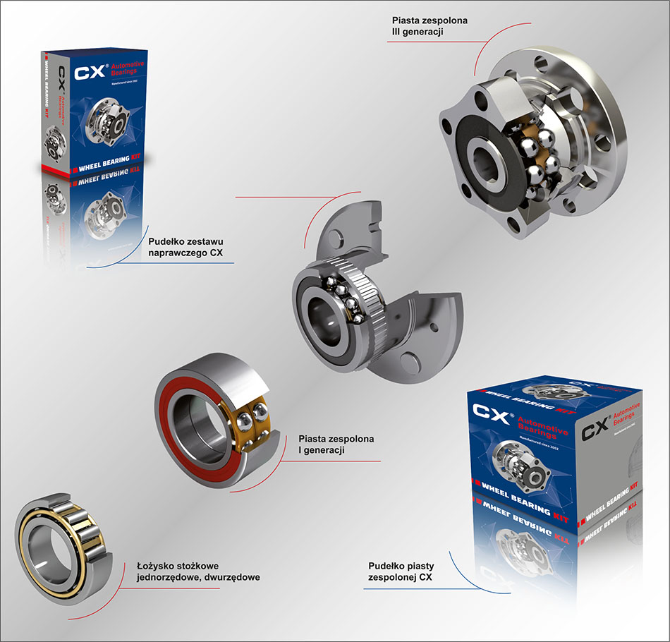 Zestawy naprawcze piast kół są wiodącym produktem oferowanym przez CX Automotive Parts. W swojej ofercie posiadamy ponad 1200 referencji dedykowanych większości pojazdów poruszających się po europejskich drogach. W zależności od rozwiązania konstrukcyjnego, typowego dla danej marki, modelu i rocznika pojazdu, zestawy składają się z: łożyska stożkowego, łożyska kulkowego skośnego dwurzędowego, piasty I, II lub trzeciej generacji oraz komponentów umożliwiających wymianę podzespołu: nakrętki, tulejki, śruby, pierścienia osadniczego, uszczelnienia i pierścienia sprężynującego.